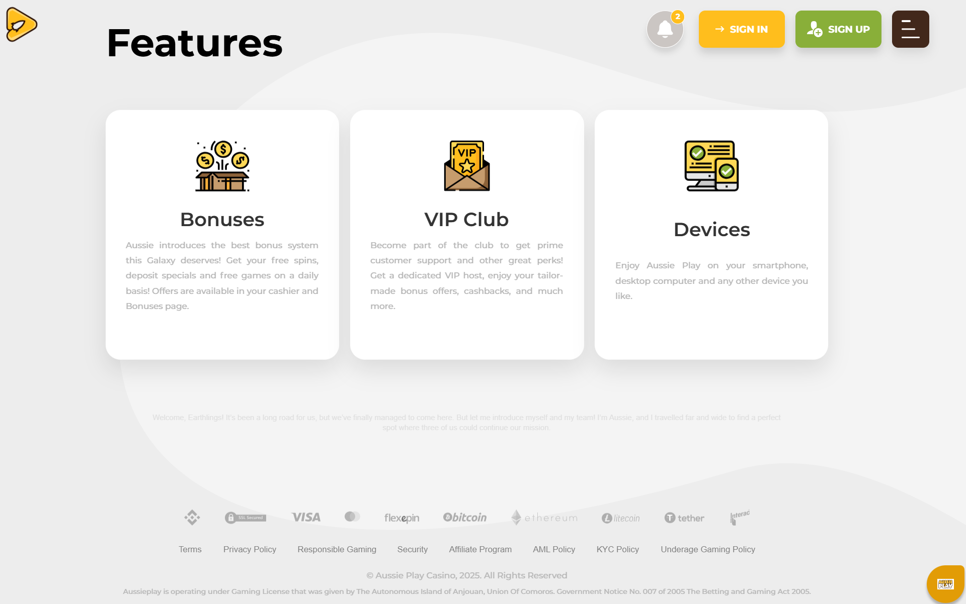 Aussie Play boasts an extensive list of features to ensure fairness and security for its players. They have a whole page on their site dedicated to all the measures they take to ensure this. They take website safety and security very seriously and they focus on building trustworthy experiences with the players.
