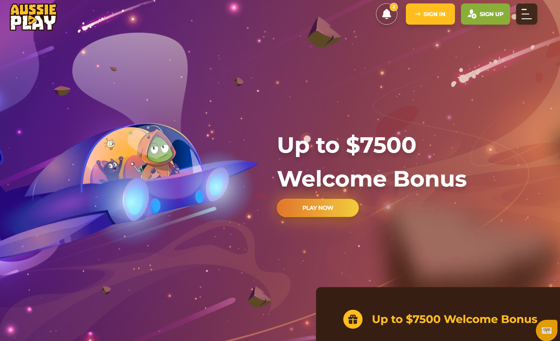 Aussie Play offers up to a $7,500 bonus upon joining.