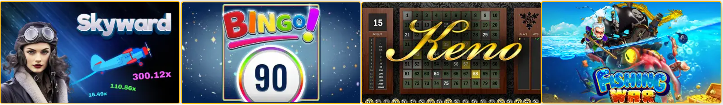 Games included: Video Slots, Keno, Scratch Cards, and Board Games.