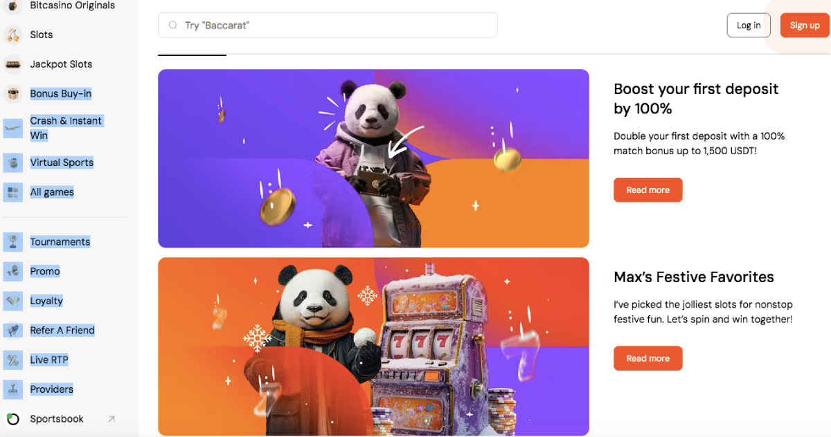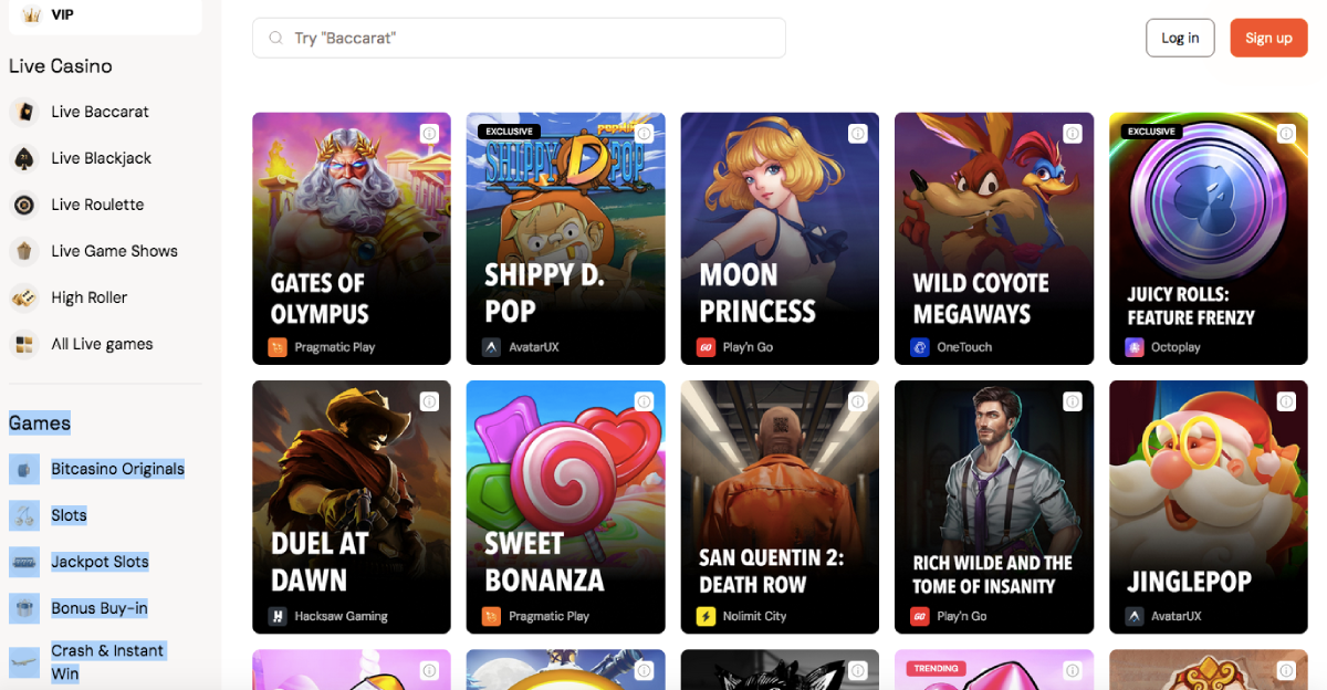 On the website’s left-hand corner menu, you’ll find a full list of gaming categories. We’d like to highlight the top three categories from our Bitcasino experience: