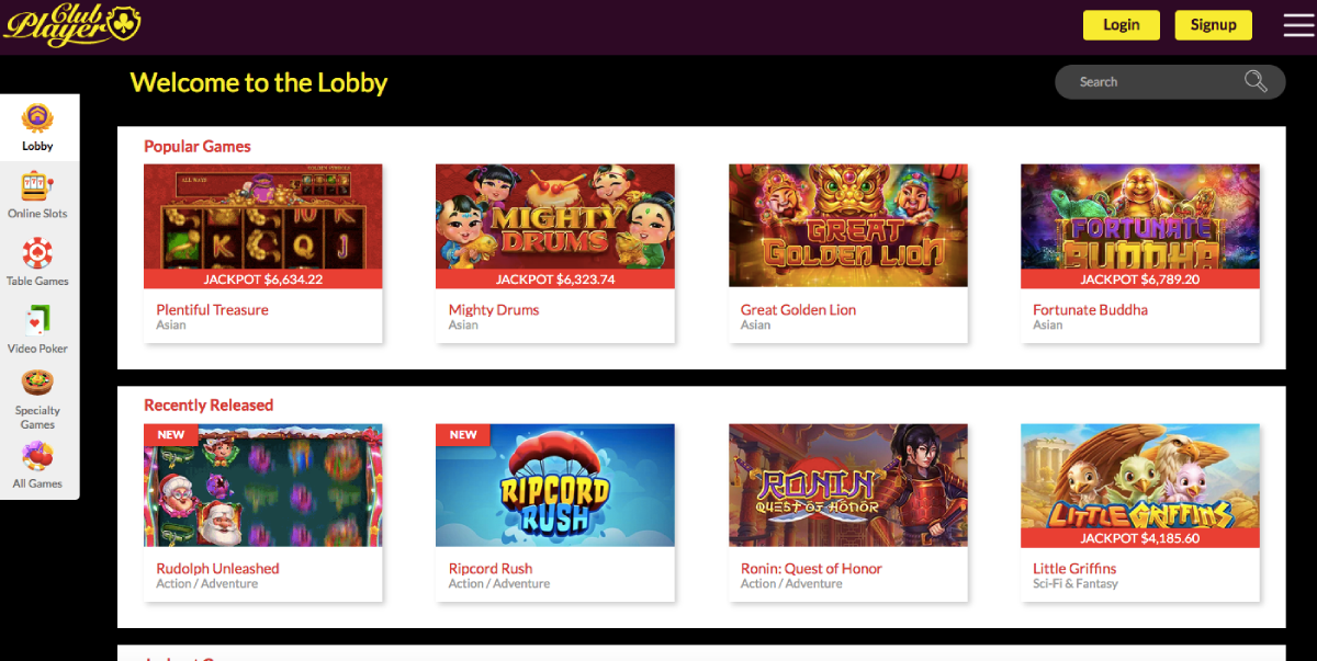 Slots, as you may have expected, are the most popular game selection. Newer games are shown at the top for players to access them more quickly. Games can also be sorted alphabetically. Club Player has a fantastic feature in that it organizes games by 15 hot themes. Cash Bandits, and Regal Riches are two great games to play if you decide to play at this RTG casino. Another downside is that they only have games from RTG.