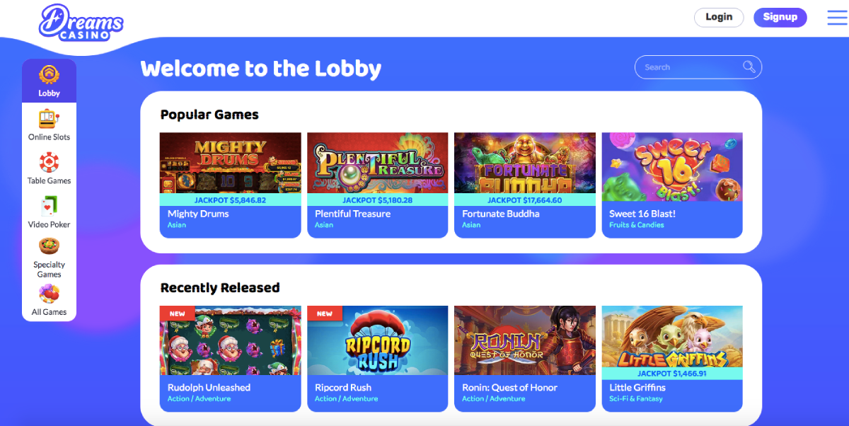 Let’s discuss the games Dreams Casino offers. You can play any mobile casino game in the Realtime Gaming library. You can play live dealer table games and regular table games available.US players and people from the United Kingdom can enjoy RTG’s variations of: