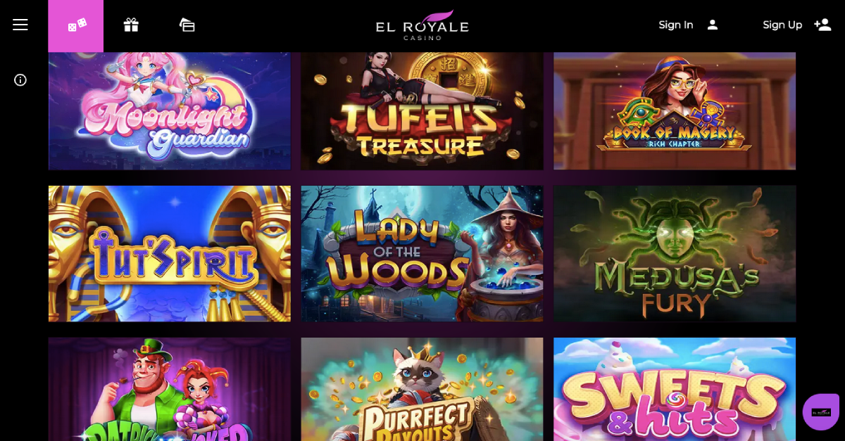 Their portfolio is regularly updated and includes the latest hit games such as IC WIns, Epic Holiday Party, Frog Fortunes, or Witchy Wins. The most popular games at El Royale casino, by category, are: