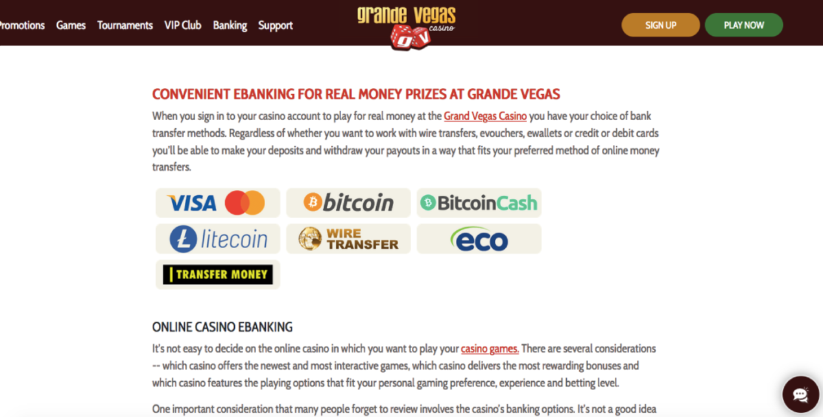 Welcome to the Grande Vegas Casino review. Grande Vegas Casino has been a reputable online casino for many years. In this online casino review, we will discuss the details of this online casino. In all of our online casino reviews, we like to separate the facts from our opinion. Slotastic and Jackpot Capital are their sister sites. Grande Vegas offers great casino bonus promotions, which include free spins. They also have on-going promotions, easy banking options, which include Bitcoin, and credit cards.