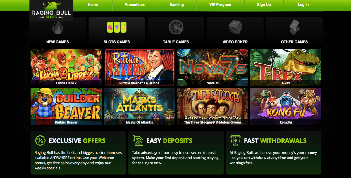 Raging Bull Casino offers over 200 casino games powered by Real-time Gaming. The games are divided into different categories like slots, video poker, progressive jackpots and more.