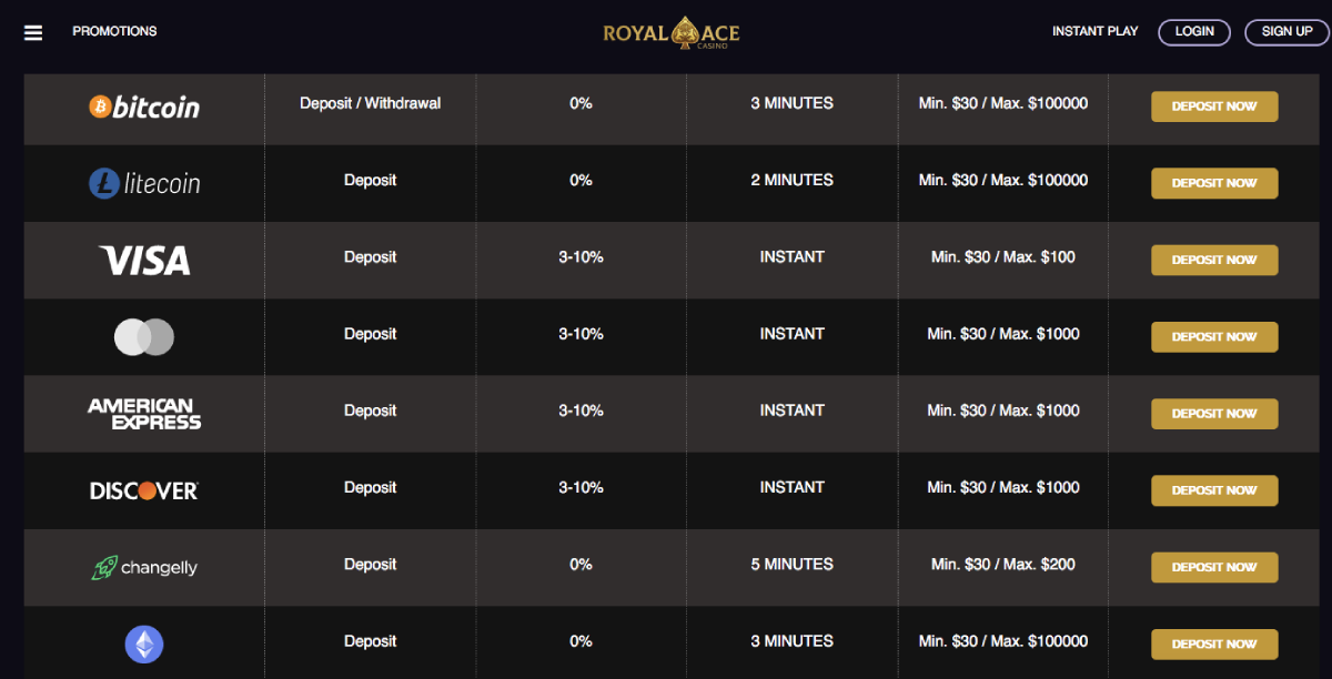 Royal Ace Casino is one of the quickest casinos when it comes to processing requests from people in the U.S. This works in their favor because people want a casino that will quickly take care of them.