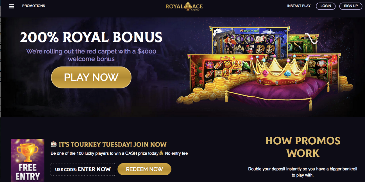 Royal Ace is the only online casino that doesn’t limit your bonus to a specific amount, such as $100 or $2000. Royal Ace is unique in that you can earn whatever you deposit.Simply said, if you’ve got $10,000 to put down right now, you would open a $20,000 account with. To receive the welcome bonus, use the bonus code NEWROYAL100.