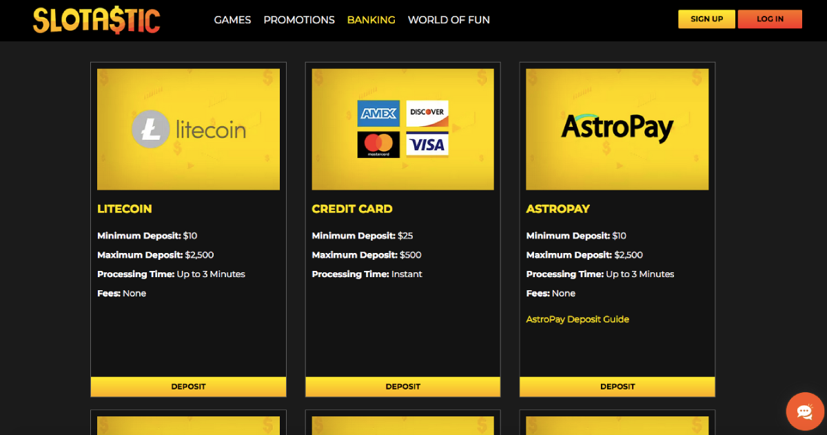 When it comes to gambling at Slotastic, you can play table games with many deposit methods. Use what you feel comfortable with for a deposit and withdrawal options. Keep in mind that Bitcoin is the fastest deposit options at this mobile casino. As one of your favourite casinos, once you deposited money, you will see it reflect in your account balance.