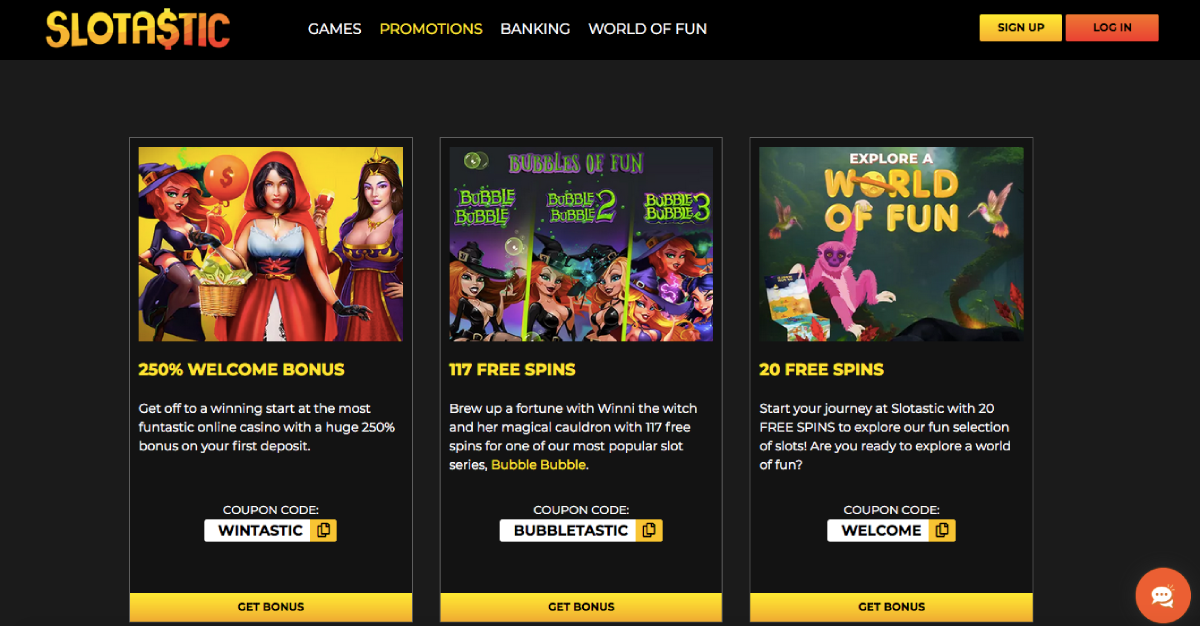 Slotastic is a casino that accepts players from the United States and many other countries. It only uses games from Real Time Gaming, which means the casino is smaller than some others, but the potential for bonuses is much higher.Welcome bonuses, slots bonus, monthly promotions, weekly promotions, and daily promotions keep the betting action going. This is good for online punters because they can make free deposits and withdrawals.