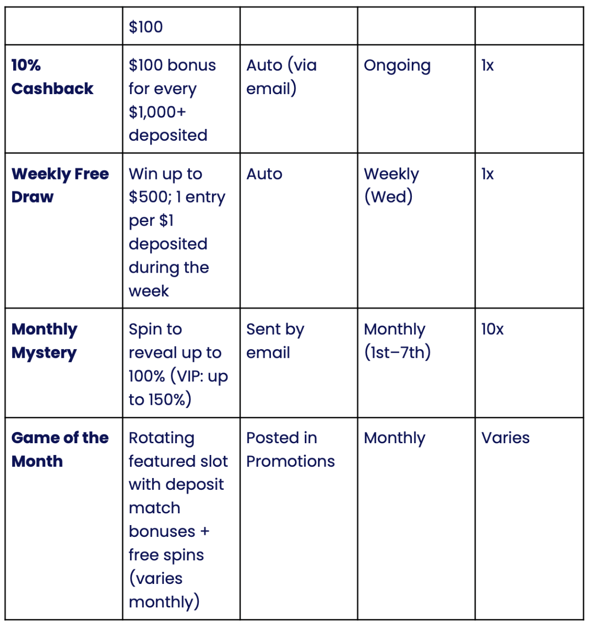 Play a mini-slot game at the beginning of each month to reveal your bonus