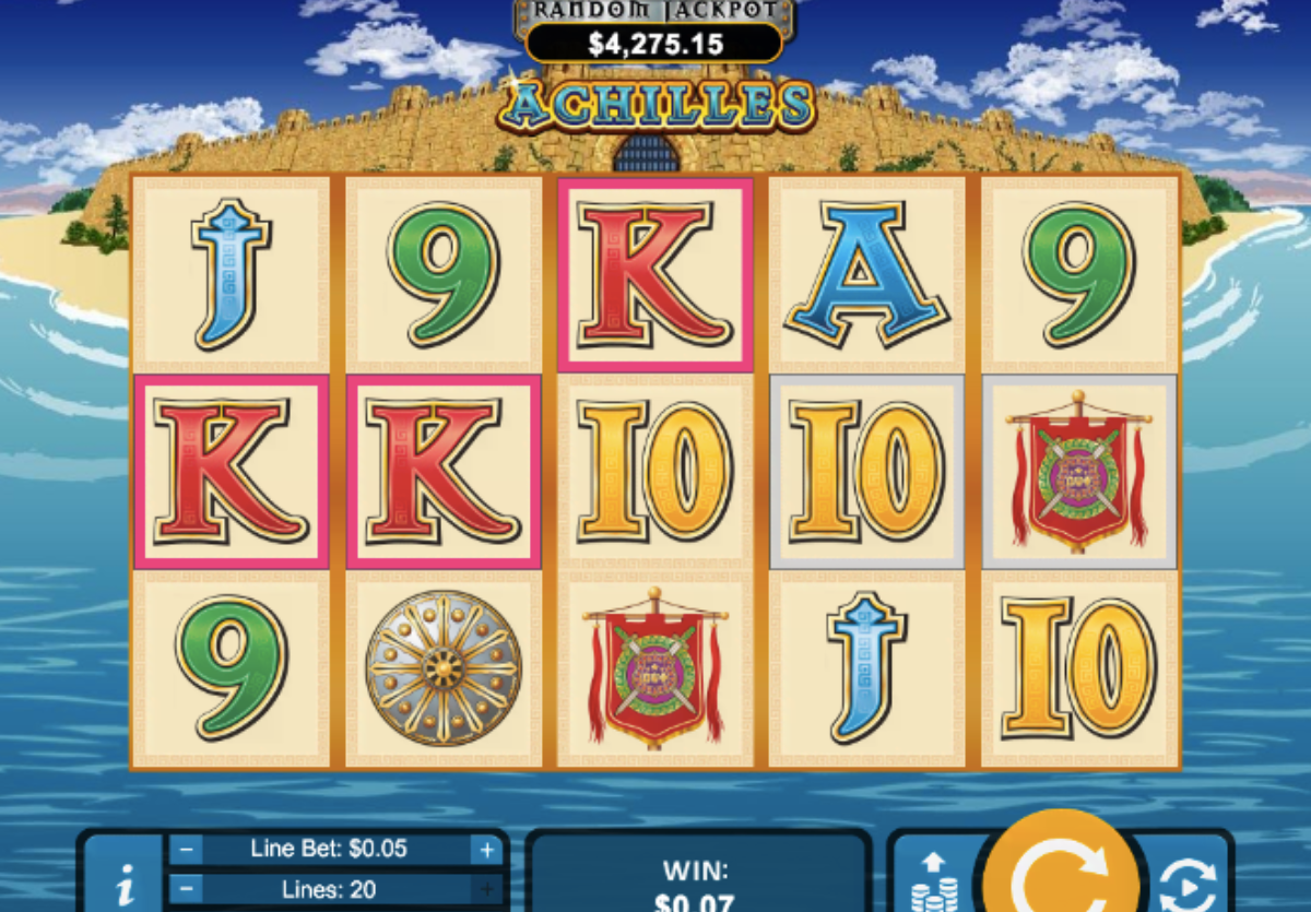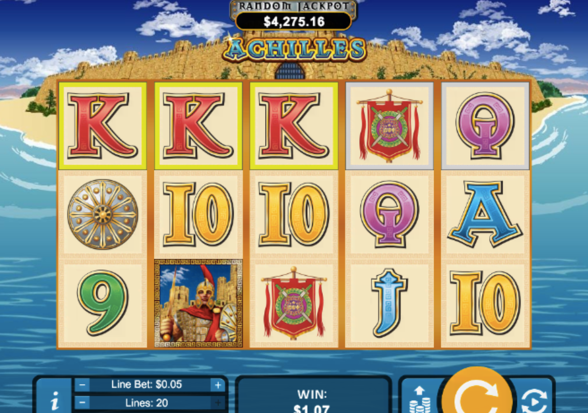 Achilles has five reels with twenty pay lines and is powered Real Time Gaming (RTG) software. This video slot machine based on the mythology of Achilles, who was a legendary Greek hero and one of the greatest warriors in Ancient Greece.In August 2020, Realtime Gaming released a sequel called Achilles Deluxe.