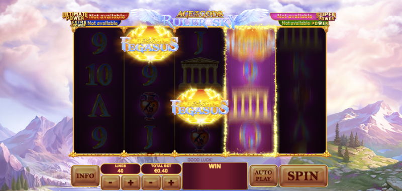 Pegasus gallops when it shows up on the reels. When you win, the other symbols disappear and a gold-framed button will add up how much you won. The total then goes to a box that says “Win”. It looks really cool!