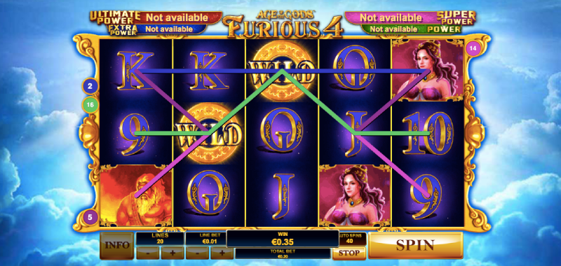 The bets per line options in Age of Gods: Furious 4 range from 0.01 to 5.00, allowing for a maximum bet per spin of 100 coins. It is important to note that players have the choice to play a single payline, which could cost as little as 0.01 per spin. As a result, this slot game is appealing to all types of players.