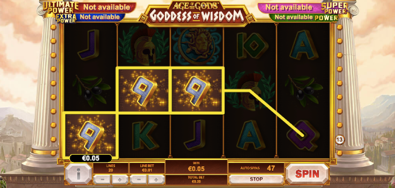 Additionally, Age of Gods: Goddess of Wisdom has a turbo mode that quickens the standard gaming mode by spinning and stopping the reels faster. This makes it possible to have more spins in your session if you wish to play faster.