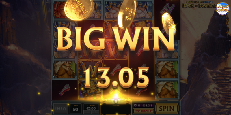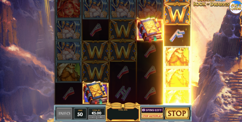 To win in the Age of the Gods Norse: Book of Dwarves slot, you need to spin a 5 reel x 5 row game grid that has 50 paylines. Land at least 3 identical symbols or wilds on a payline, starting from the first reel to create a winning combination.