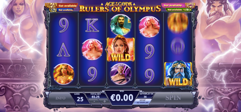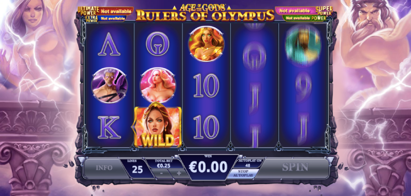 Rulers of Olympus is part of a group of games called Age of the Gods. It has fun things like free spins and wilds that can help you win. If you get the bonus symbol on reel 5, Zeus will send down lightning to give you up to 7 extra wilds!