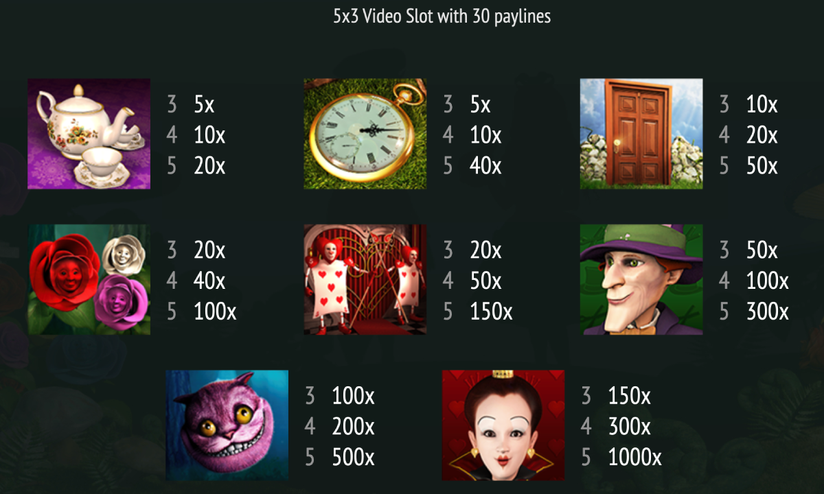 Every portrait of Alice you come across during the bonus game will add an extra free spin. There is a 2X multiplier on all free spins during this bonus game. The great news is that every turn that you make increases the multiplier.