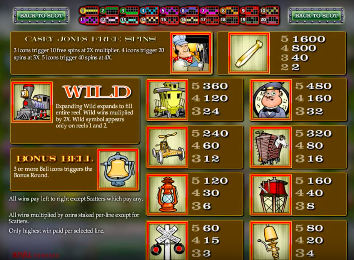 When 160 coins by landing water towers but if you land a variety of carriages when 360 coins per carriage. One Casey Jones symbol is worth all the way up to 480 coins!