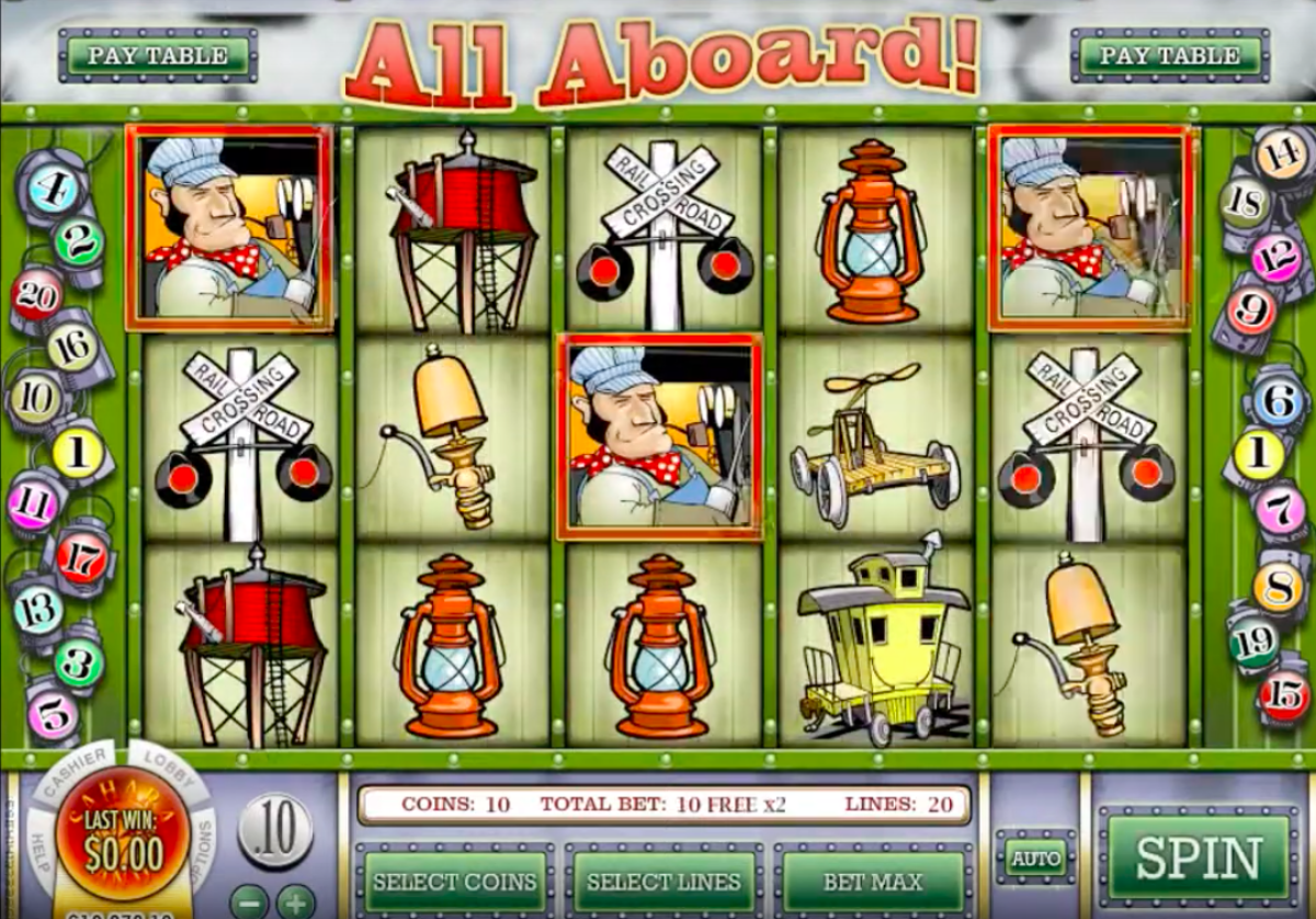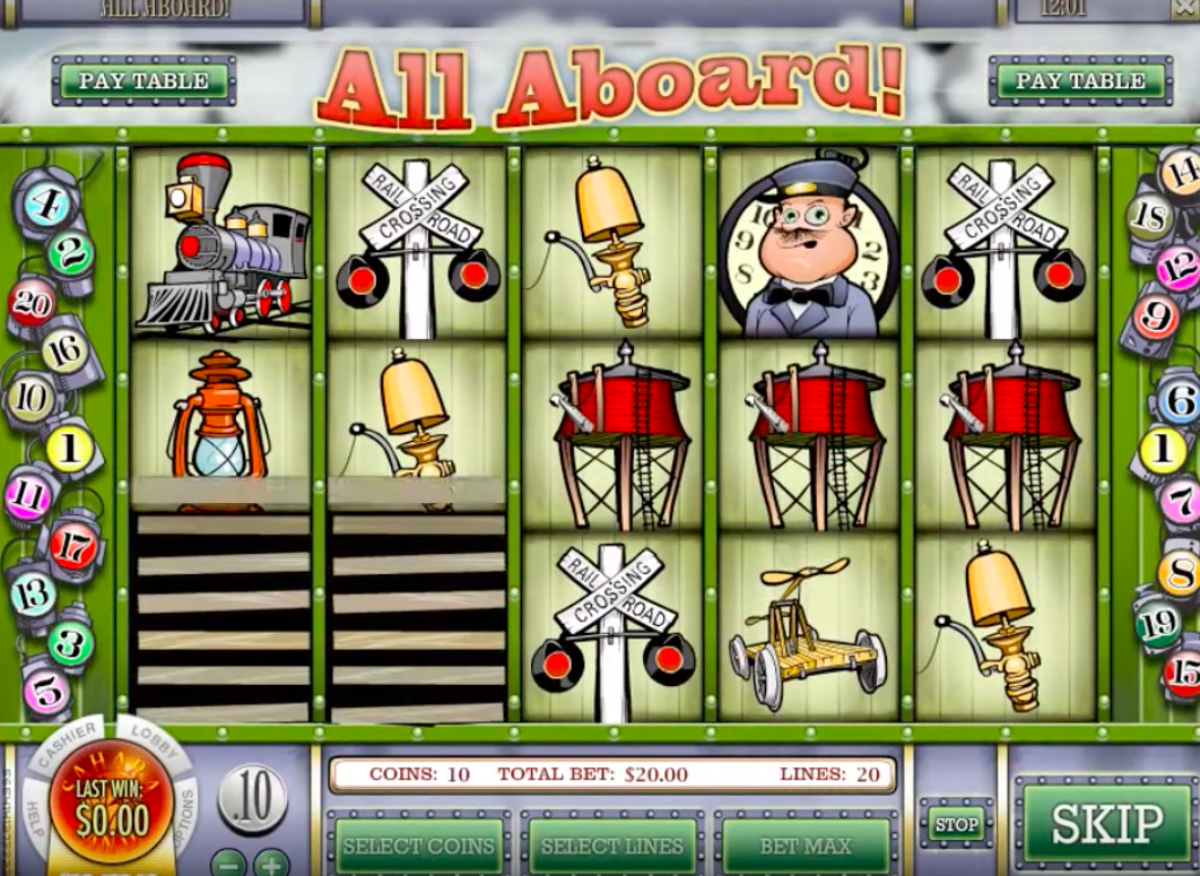 Romance, trains and traveling are the themes in the All Aboard slot machine game that features five reels with 20 pay lines. Rival Gaming software powers this video slot machine that can be played using your Internet browser, using mobile smartphones and tablets.All Aboard does not feature a progressive jackpot but does have some very cool features like expanding wild symbols, bonus rounds, and free spins.
