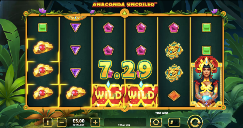 Enjoy the beauty of the jungle while playing the Anaconda Uncoiled online slot by Playtech. The game features six reels arranged over a backdrop of lush vegetation.