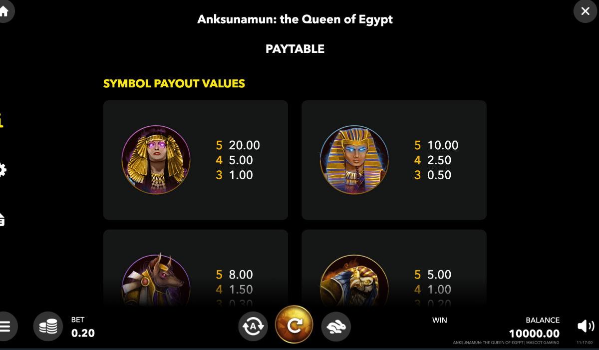 Anck Su Namun: The Queen of Egypt by Mascot Games appears at first glance to be a traditional video slot game, but after playing a few seconds you’ll realize that it’s much more than that. The real money online slots game here is designed to make you feel excited. That’s what most people want when they play slots online for real money.