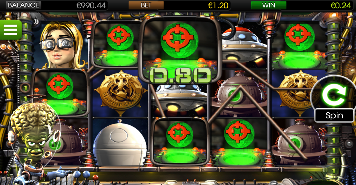 You can earn a plethora of free spins, and the brain aliens will help you out. When you land three of more of the scatter brain alien symbols on the reels, it will expand to allow the UFO to take up the entire reel. This function gives the player a nice amount of free spins depending on how many brain aliens that you landed.