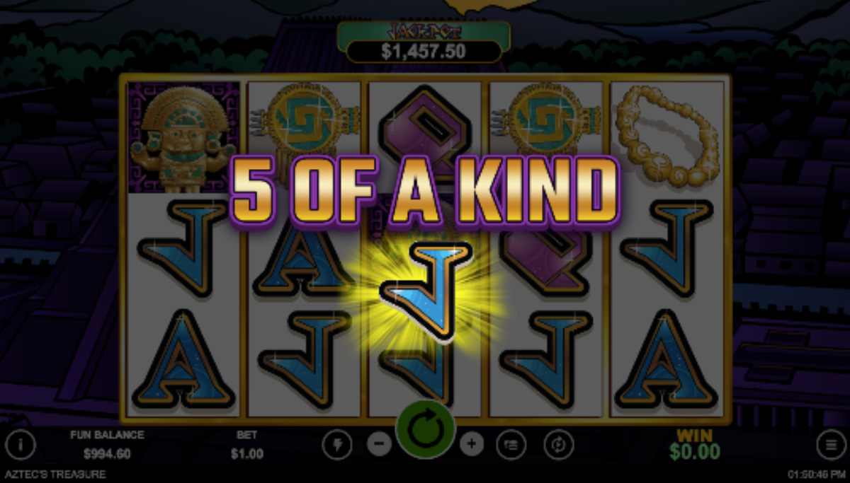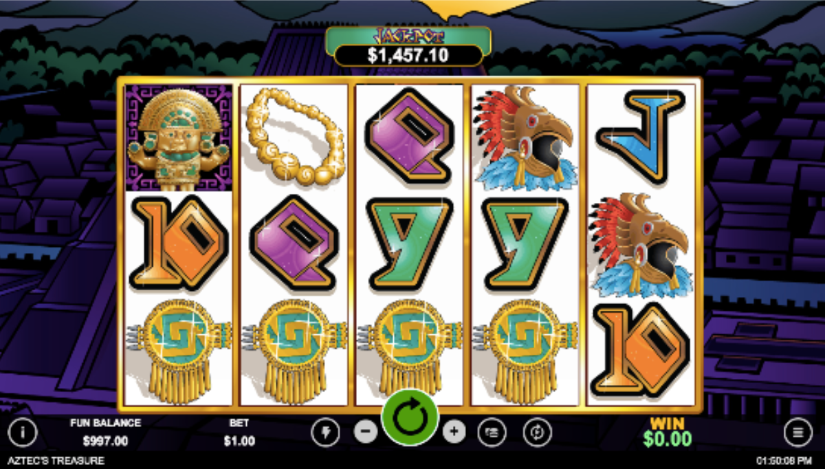 The Aztec’s Treasure slot machine features five reel and 20 pay lines. Real-time Gaming powers this game and released it in 2009.ย Aztec’s Treasure is one of the most popular RTG slots that they have ever released. It features a progressive jackpot is triggered at random and also has a regular fixed coin jackpot plus scattered winds, wild symbols, free spins, bonus games and many other ways to win.