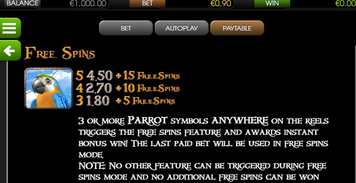 When you manage to land 3 parrots, your reward is both free spins and bonus credits right away. It’s important to remember that these special spins can’t be reactivated while another feature is already active.