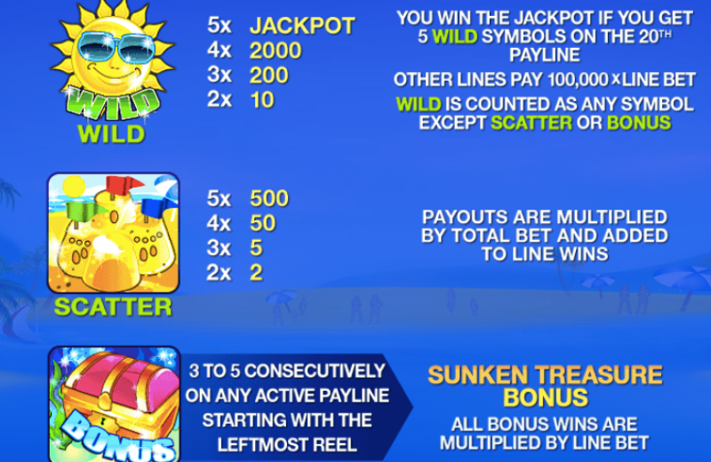 Although Beach Life is a progressive slot, its RTP of 93.25% is not the highest compared to other games. However, getting five wild symbols and hitting the jackpot will give you the highest payout, which has reached ÂŁ4.4m. If you get four wilds, you’ll receive the highest fixed payout of 2,000x your bet size.The scatter symbol pays out the second-highest amount of money, and it can generate winnings from both left-to-right and right-to-left, which maximizes your chances of winning.