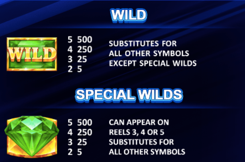 The gemstone is the Special Wild symbol that only appears on reels 3, 4, and 5. Whenever you land on this symbol, it will trigger the Special Wilds feature.