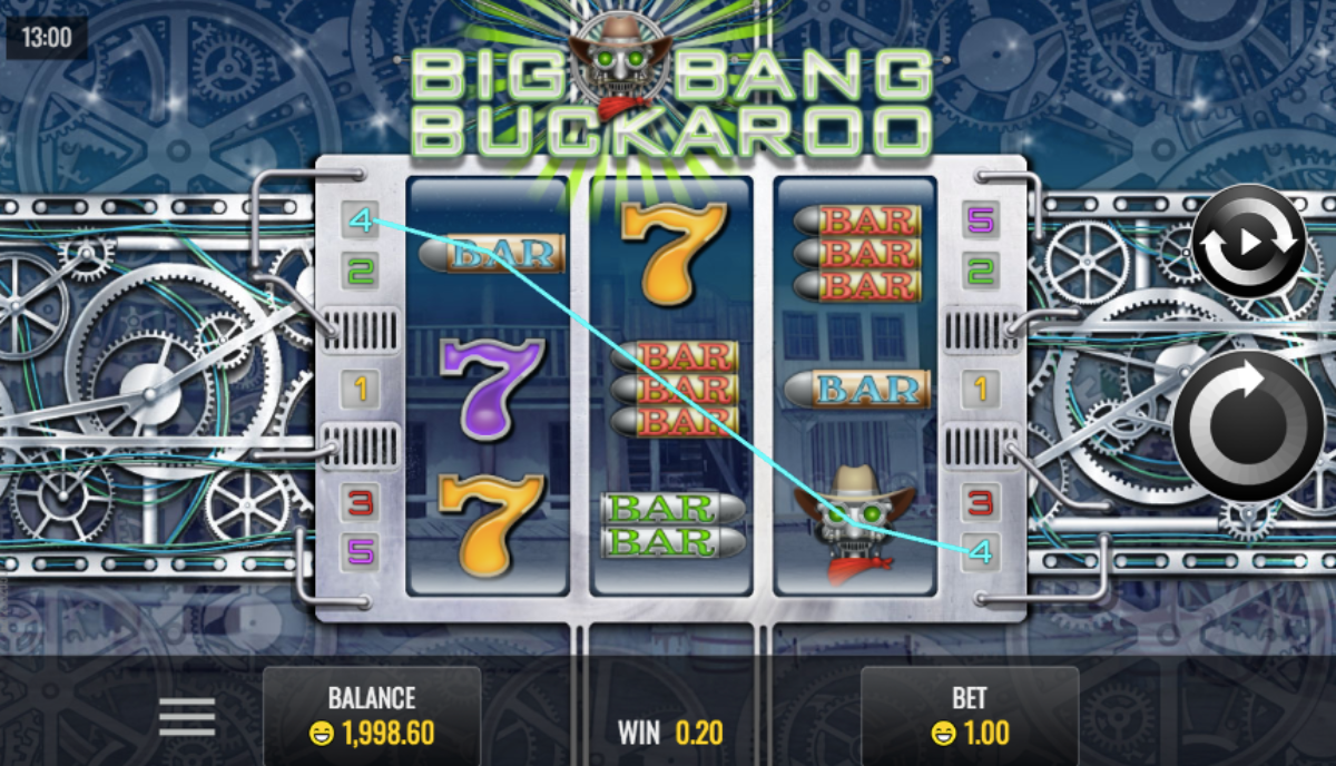 The overall look of this game at first glance appears to be another dull one-reel slot but looks may be deceiving, and first impressions do not always tell the whole story. Big Bang Buckaroo offers five pay lines with a generous amount of rewards in symbols while giving online players several chances to cash in big.