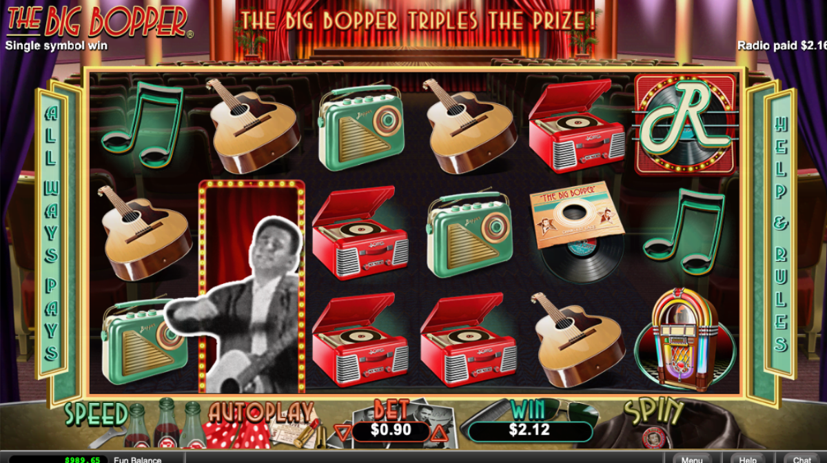 ‘Hello, ba aaa aaby! Hit the dance floor with this hip-swinging, toe-tapping new slot from Real Time Gaming, branded with classic tracks and fun footage from none other than The Big Bopper® himself!
