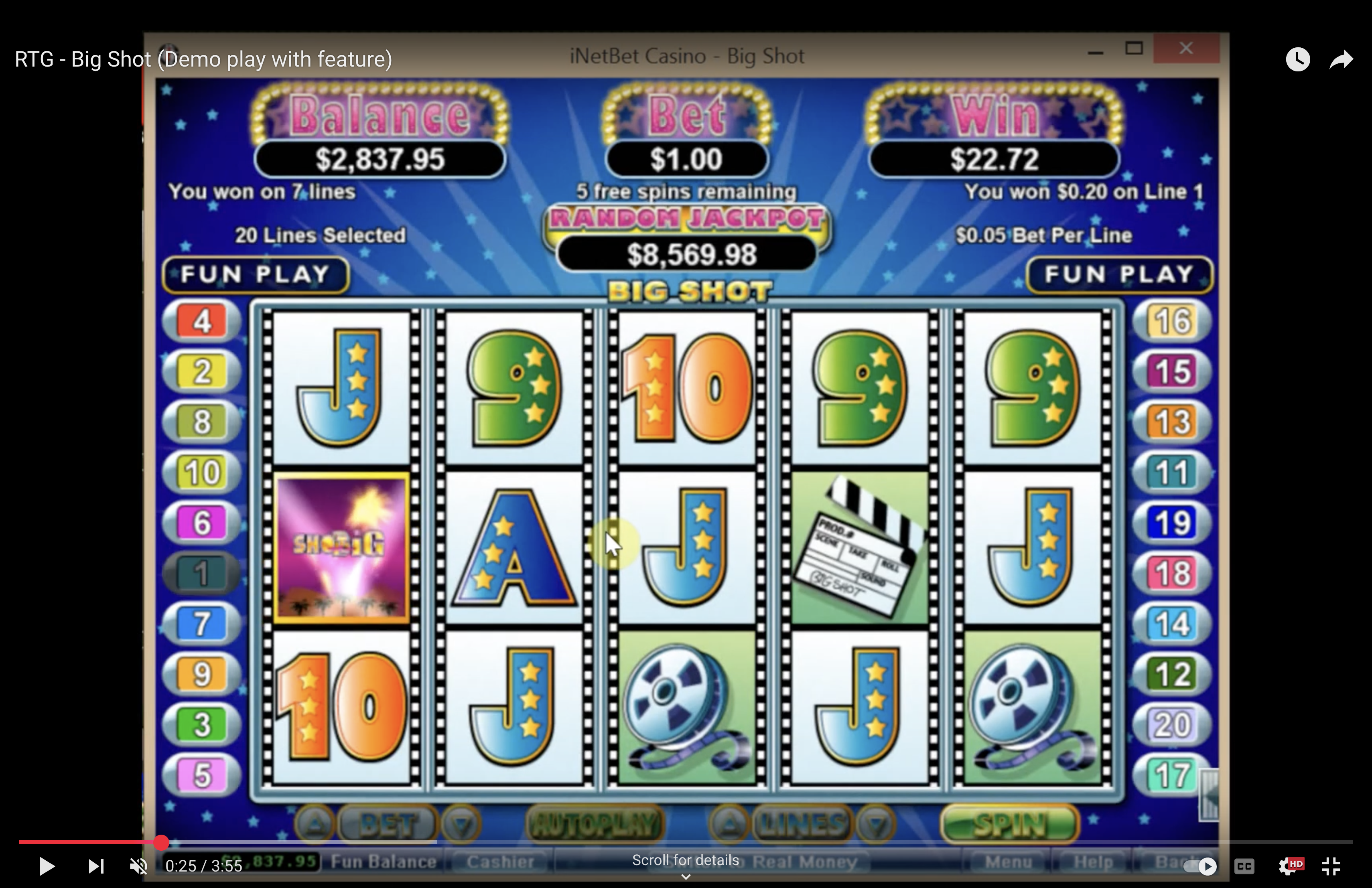 You will see icons and characters like tradition poker playing card symbols, Mr. Superstar and his date, a sports car, and award symbol. There is a wild and a scatter icon in this game that can increase your chances of winning by a great deal. The two most critical images when playing Big Shot are the Big Shot icon and the Award symbol.