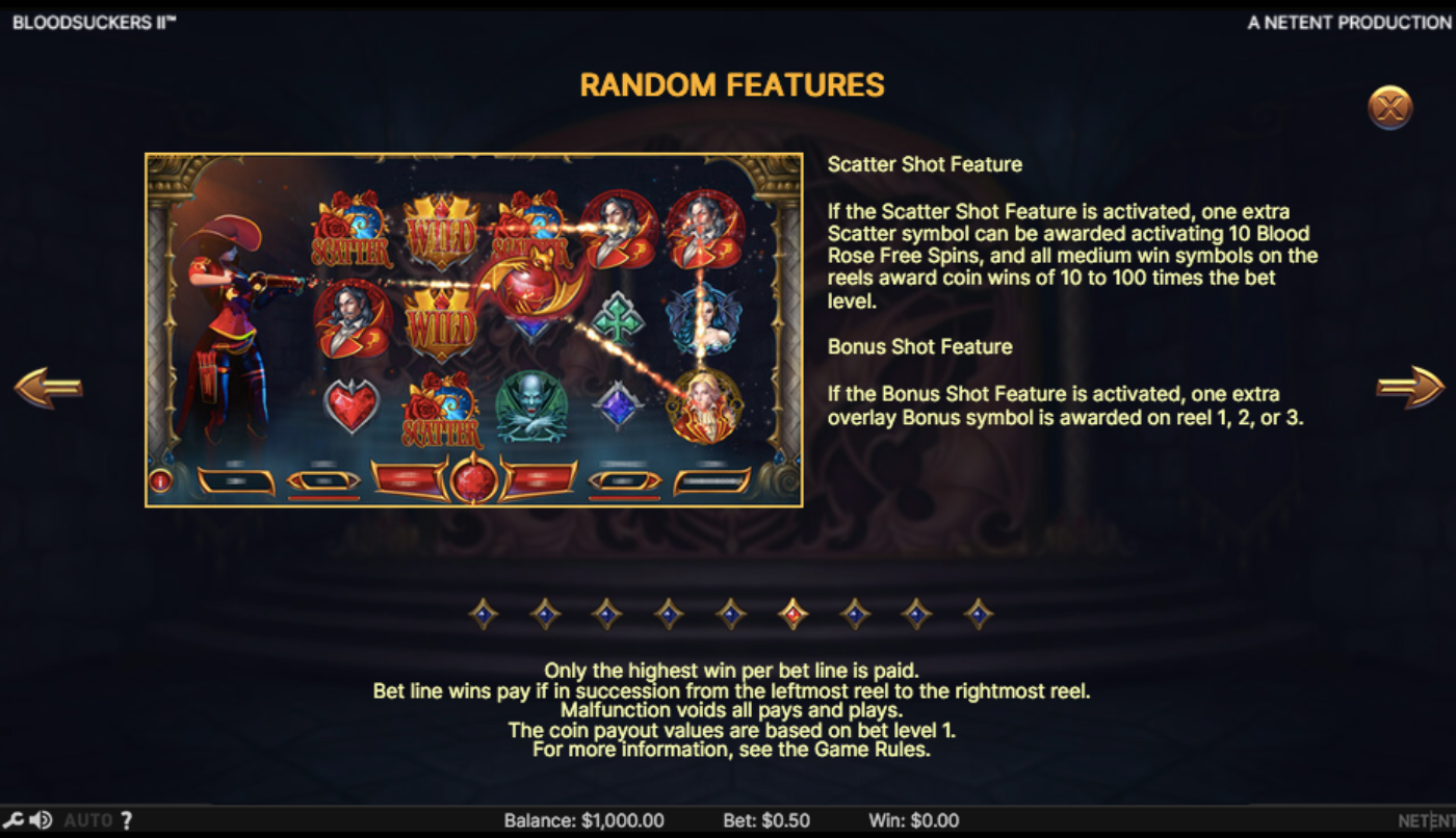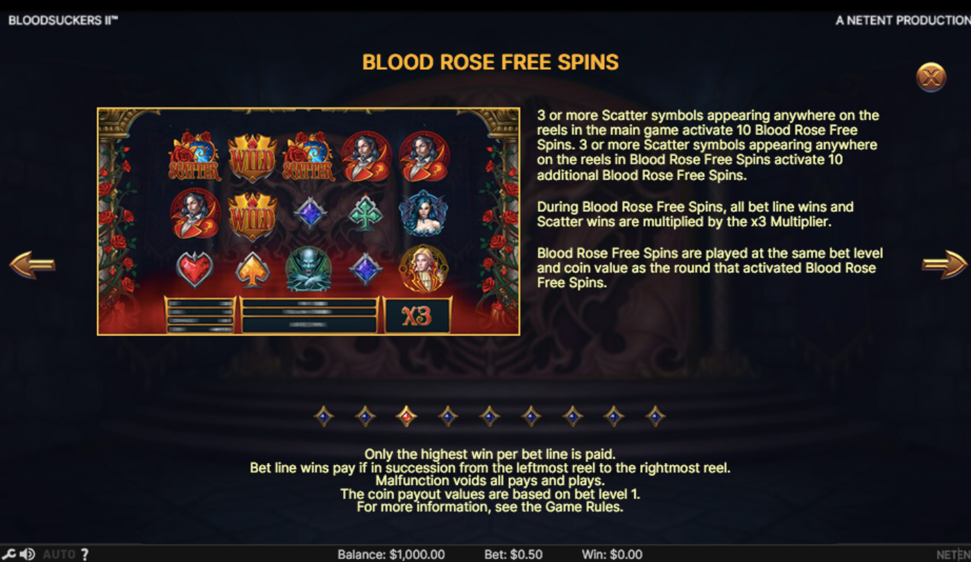 High Rollers enjoyed this version of bloodsuckers much better because the betting range is larger and bigger. Start playing bloodsuckers slots online for little as $.25, which is higher compared to the first version as you complete with a little as one penny per spin. $125 is the maximum bet per spin in the second version, while $50 was the highest amount of money you could bet per spin in the first version.
