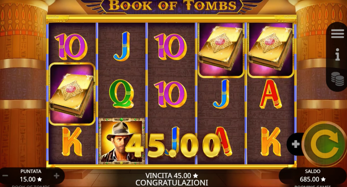 The theoretical RTP of Book of Tombs is 95.42 percent, which is somewhat lower than average. This is a little below par, so it’s a bit disappointing. Many of Booming Games’ slot machines have low RTPs in comparison to other developers. In other words, many are less than 96 percent.