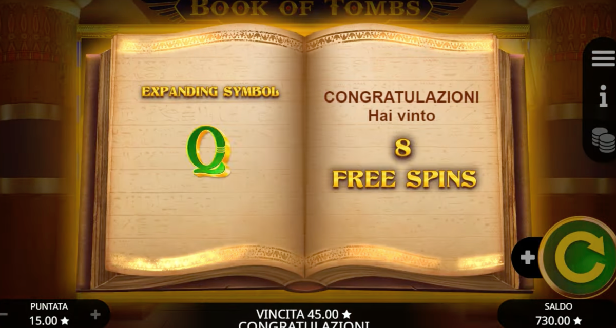 Book of Tombs is a highly volatile game. This implies you can expect a lot of non-winning spins. The slots online, in particular, has a good hit frequency of 34.17%. On every third spin, we verified that you should achieve a winner.