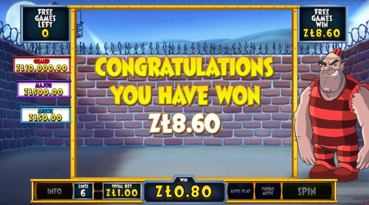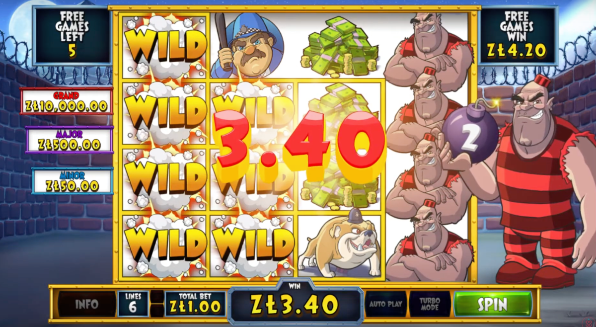 The Bomb feature can lead to bigger wins, especially when you win with the 25x multiplier. The Fortune Wheel feature is also attractive because of the chance to win a top prize of 10,000x your stake. Additionally, the free spins can be profitable if you accumulate a lot of wilds on your last spin. All in all, we enjoyed this prison-themed game.