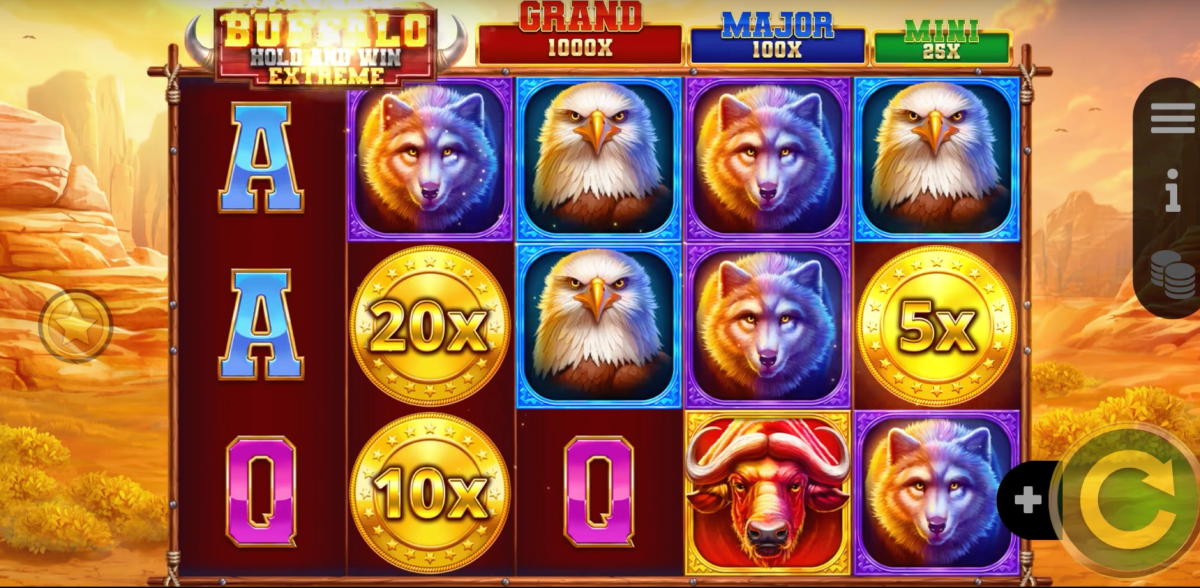 The North American wildlife-themed Buffalo Hold and Win slots game has several animals on the wheels, such as mountain lions, wolves, bald eagles, and mountain lions. The buffalo is the most generous, with each sign being meticulously detailed. Playing card symbols may also be seen.