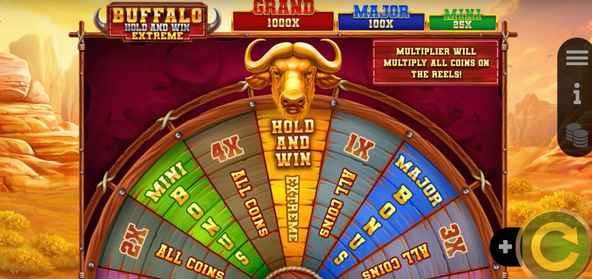 Despite the fact that you may win any of three jackpots on the Buffalo Hold and Win slot machine, they are not progressive awards.The Jackpot, Matching Bonus, and Multipliers are calculated based on your wager. The Jackpots, matching bonuses, and multipliers are all set at 25x, 100x, and 1,000x your stake. Progressive jackpots continue to rise in value until a player wins them.