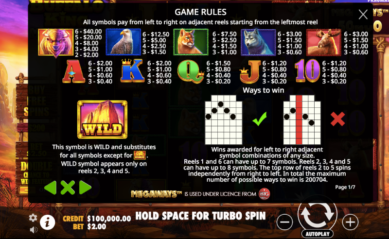 If you’ve played a Megaways slot before, then you’ll know how to play Buffalo King. By displaying various symbols on each reel, the amount of winning ways is increased.