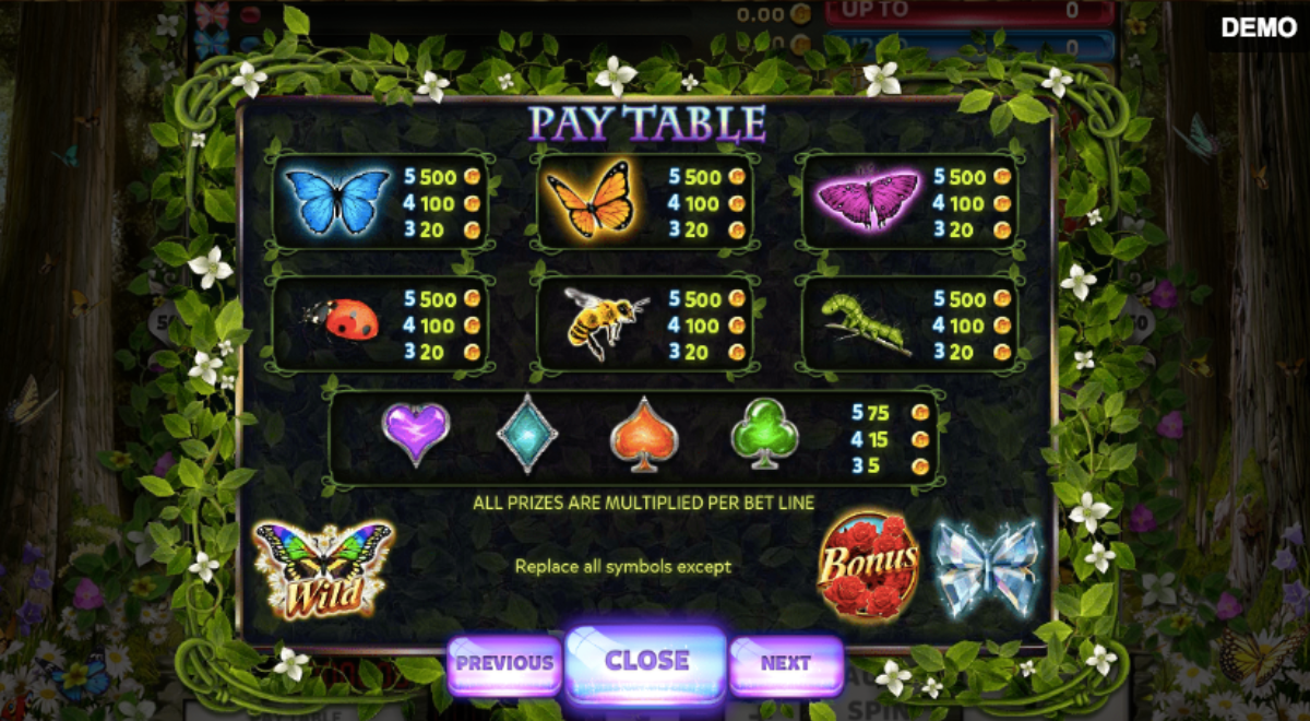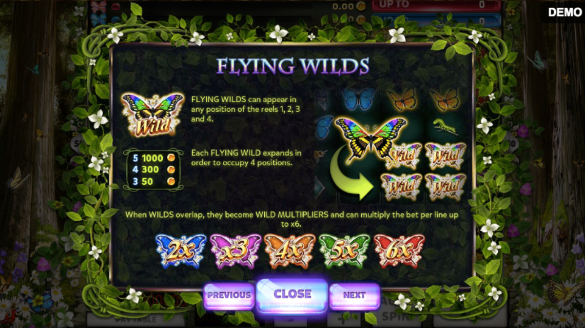 If you’re the type of slots player who pays attention to the symbols as they drop, you’ll be drooling with excitement. Any area where the newborn Butterflies fall becomes untamed, so what appears to be a sure loss may result in a jackpot if you have the correct blue butterfly on the first reel!