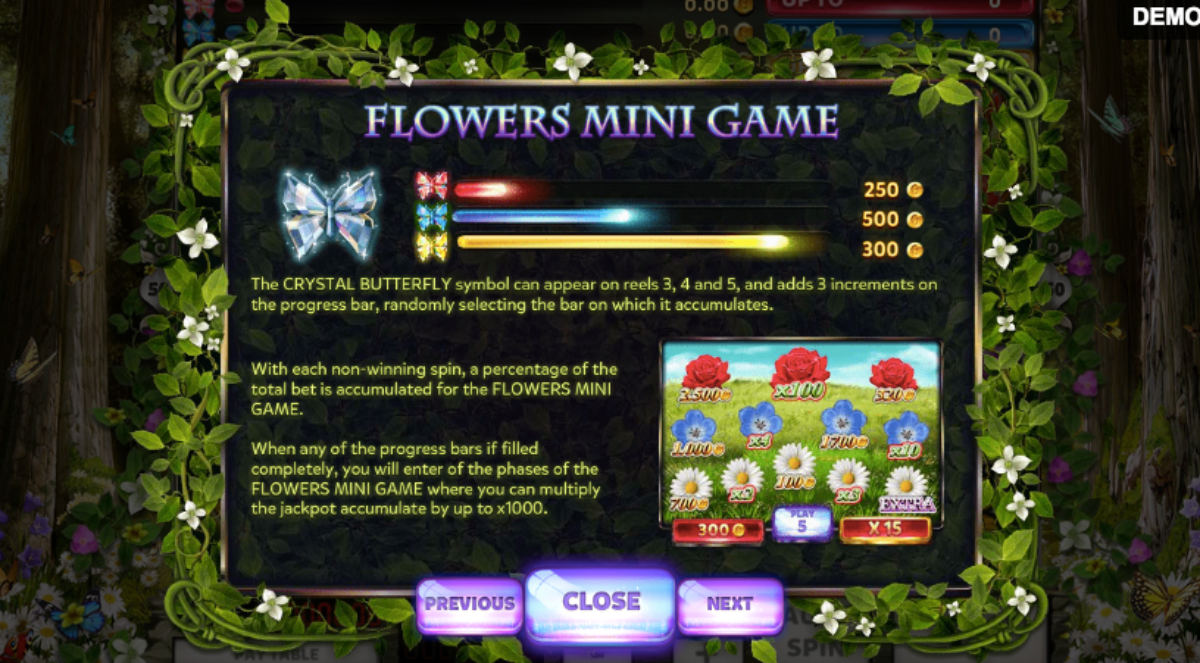 On a five-reel slot machine with 10 pay lines, the major butterfly has a jackpot of 7,000 coins and the little one rejects 3,000. For each scatter symbol that appears on reels 2 through 4 (a random scatter occurs on reel 5), the total bet multiplies by 100 for a potential scatter wins. Butterflies Slot offers a special bonus feature to players who match three ‘House Symbols’ on reel #1, which is accompanied by dynamic animations.