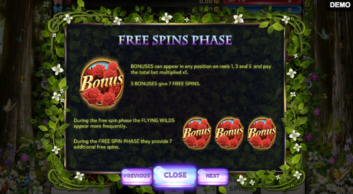 The flower is the scatter symbol, and any two or more pay multiples of your entire wager are possible. When two or more flowers appear on the screen, they dance. Scatters pay twice your stake if two appear, three scatters pay five times your stake, four pays twenty times your stake, and five will pay a hundredfold of your bet.