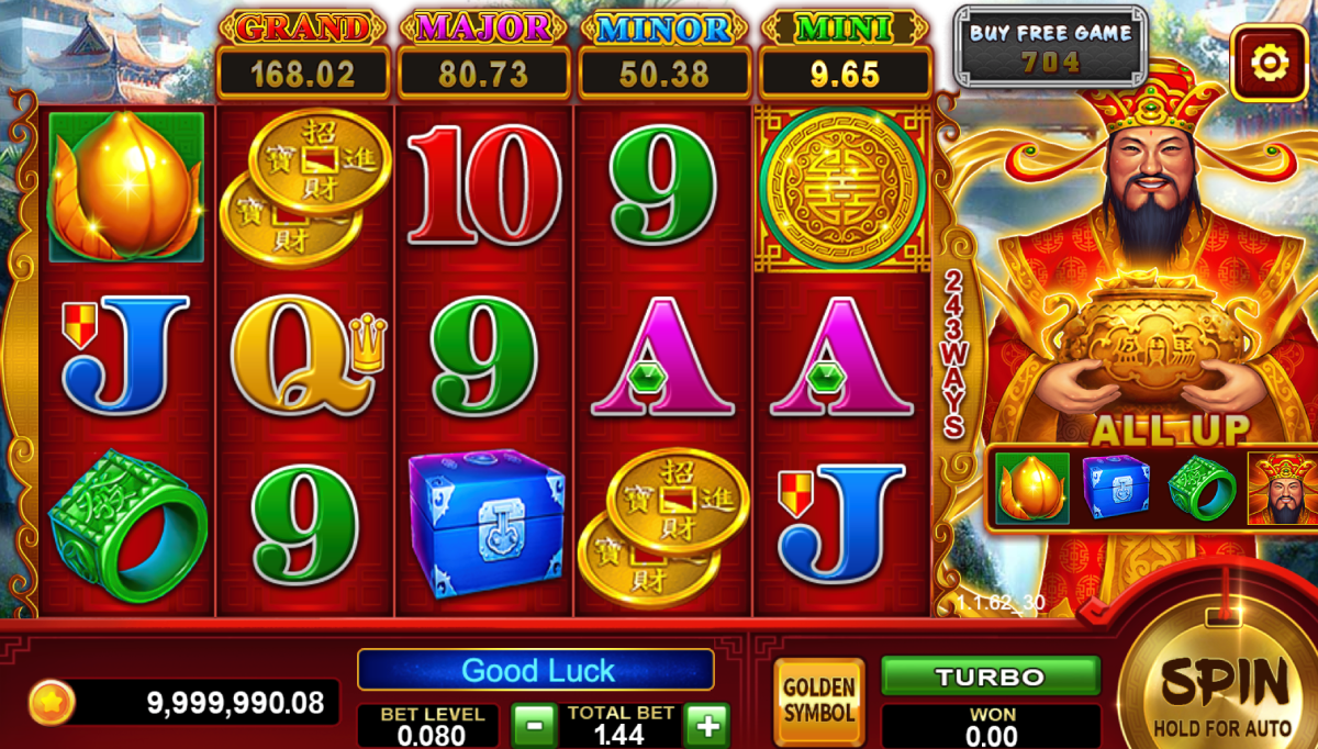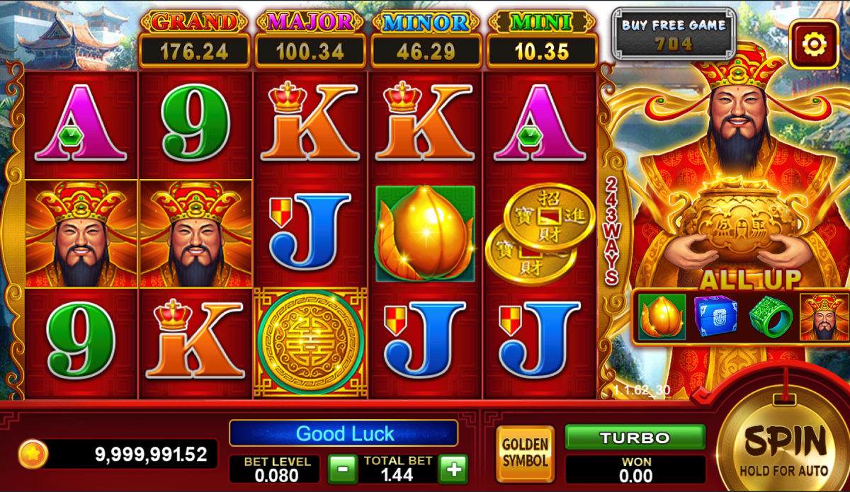 The Caishen’s Fortune slot machine has five reels and two-hundred-forty-three ways to win. With that many ways to win, it is hard to spin the wheel without hitting a few victorious spins. Moreover, you can bet anywhere from one penny up to five cents per pay line. Ultimately, this makes the betting range between thirty-eight cents and one hundred ninety dollars. We feel that this is great for penny slots players as well as high rollers. $9,500.00 is the maximum cash jackpot in the game. However, the maximum coin jackpot is 19,000 coins or credits.