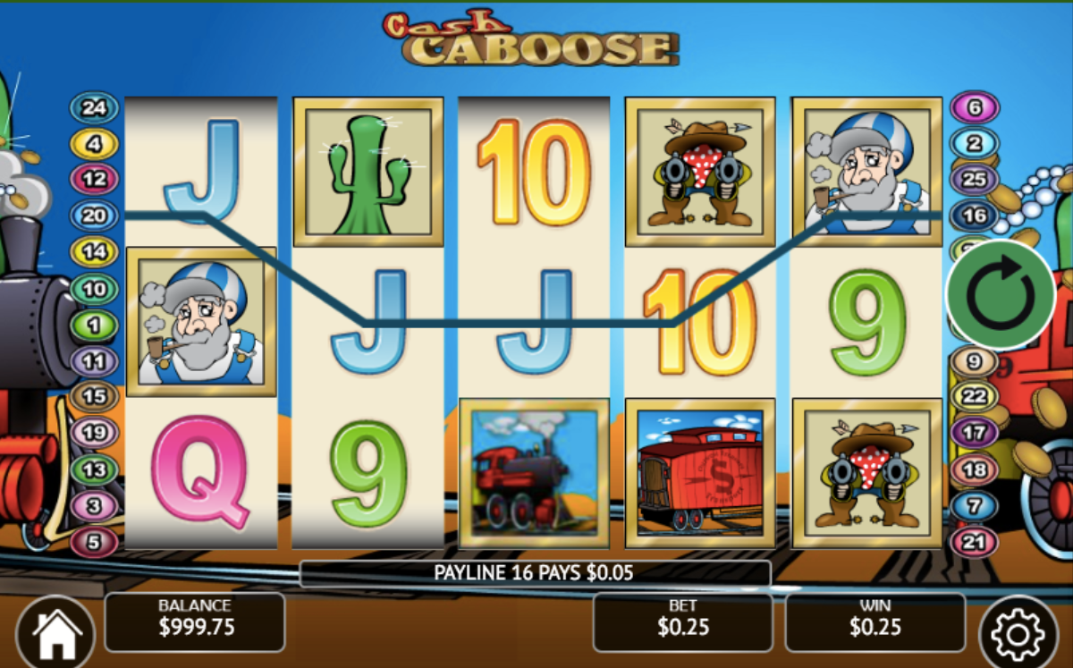 Cash Caboose comes with five reels and twenty-five pay lines but no progressive jackpot. The lack of the progressive jackpot is made up of big wins, bonus rounds, and large multipliers.