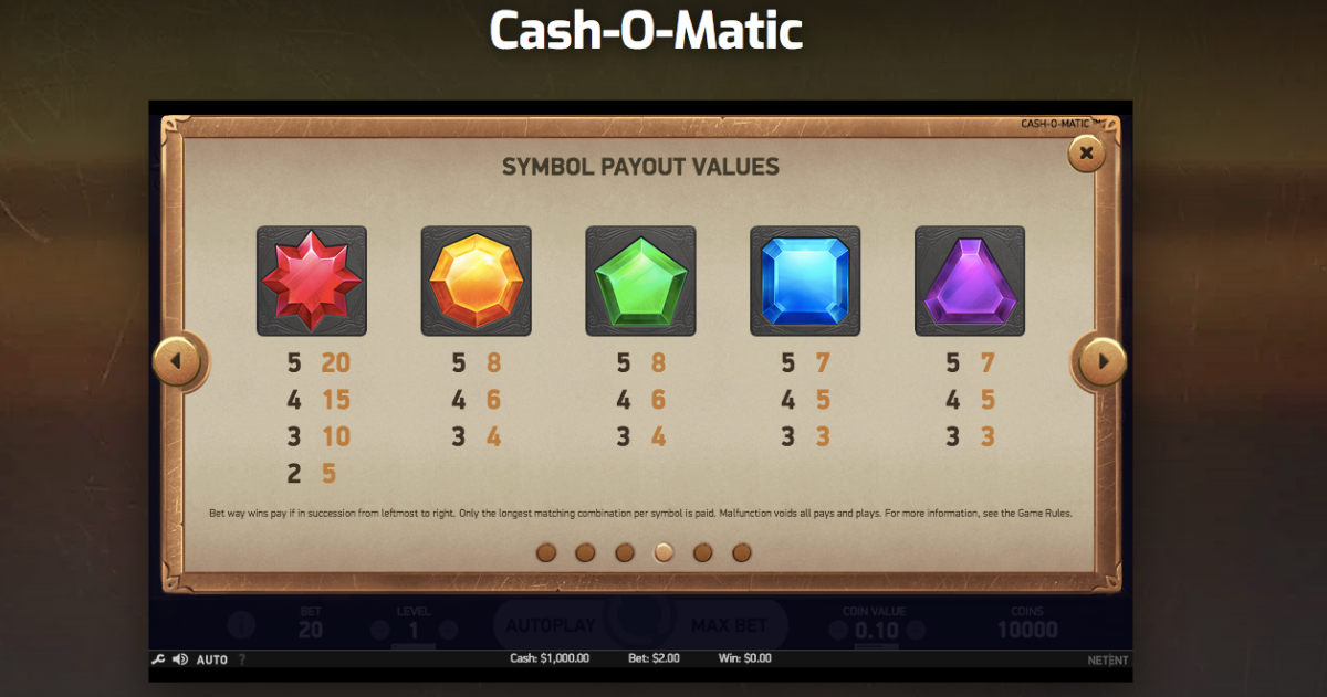 Welcome to the Cash-O-Matic slot machine reviews. In this review, we will tell you facts about this game. Also, we will give you are opinion as well as tell you how you can win money. First of all, Net Entertainment released this game in 2019. According to the official NetEnt website, this pokie offers a 96.33 RTP% (return to the player percentage).