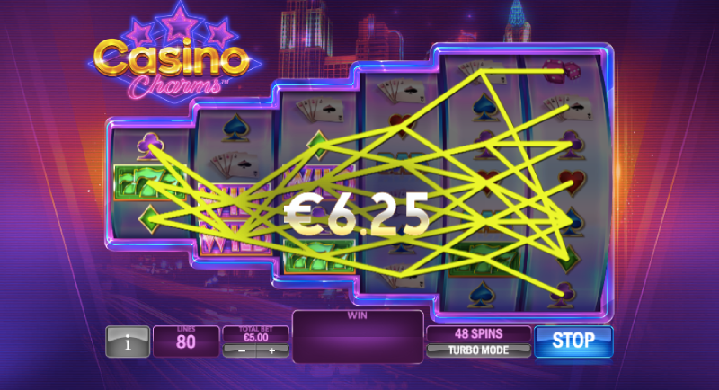 Casino Charms has 5 reels and 80 paylines. You can bet a minimum of 0.20 credits and a maximum of 100 credits per spin. The betting amount can be easily changed, and there’s also a turbo mode to make the game run faster.