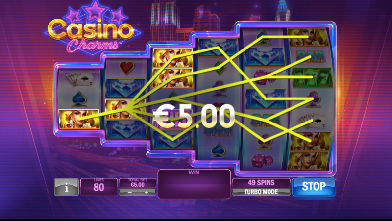 Casino Charms has 5 reels and 80 paylines. You can bet a minimum of 0.20 credits and a maximum of 100 credits per spin. The betting amount can be easily changed, and there’s also a turbo mode to make the game run faster.