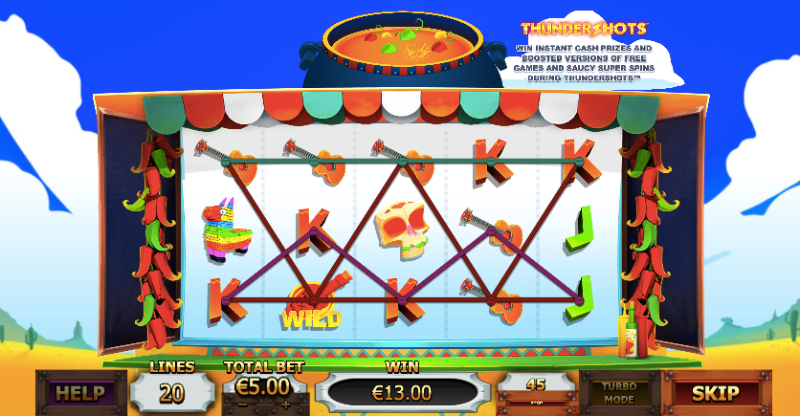 We found Chili Eruption Thundershots exciting because of the way the saucy super spins and free games can be combined using the thundershots feature. The game offers a lot of potential for entertaining bonus rounds.