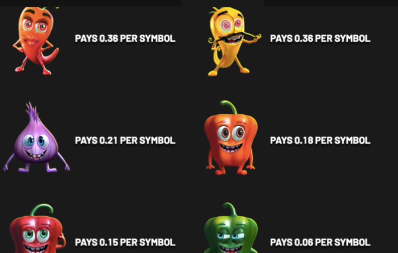 You will love the Mule, who is smiling and wearing a Sombrero. When you get the Scatter that triggers free spins, it is called Pinata. You can fill all of your cells with the Pinata to get a certain bonus prize. Some ingredients for a perfect salsa can be found in regular symbols. The Female Orange Pepper and the Male Yellow Pepper are leading the pack of Vegetables that are gathering for the fiesta. Onion, Garlic, and Tomato are also there. There are also three types of Paprika: Orange, Green, and Red.